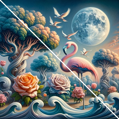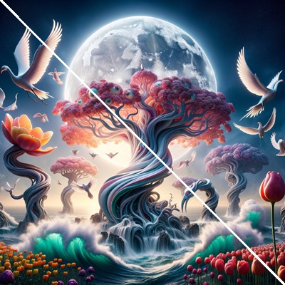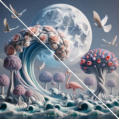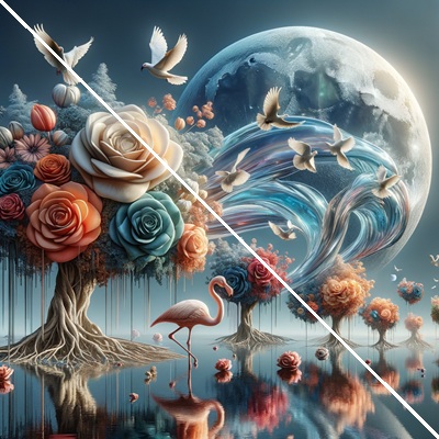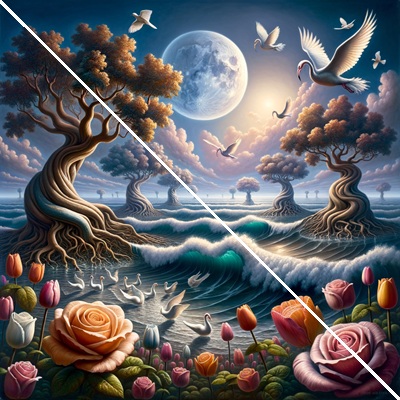 Emotional Impact: Natural imagery often triggers positive emotions, such as tranquility, joy, or nostalgia. The graceful swan, vibrant flowers, and serene lake can serve as a reminder of purity, elegance, and the simplicity of nature, offering an emotional escape from daily stress.