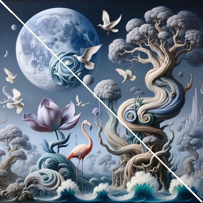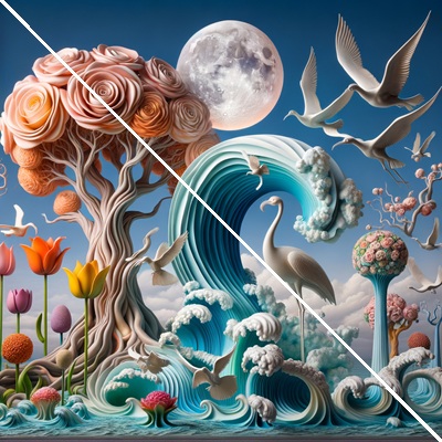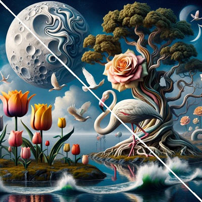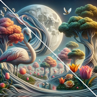 Emotional Impact: Natural imagery often triggers positive emotions, such as tranquility, joy, or nostalgia. The graceful swan, vibrant flowers, and serene lake can serve as a reminder of purity, elegance, and the simplicity of nature, offering an emotional escape from daily stress.
